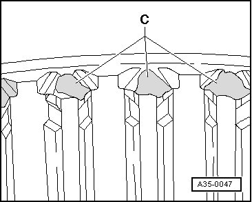 • For installation heat to approximately 100 °C (212 °F) with the inductive heat unit (VAS 6414) and during installation press on to the stop so that there is no axial clearance.