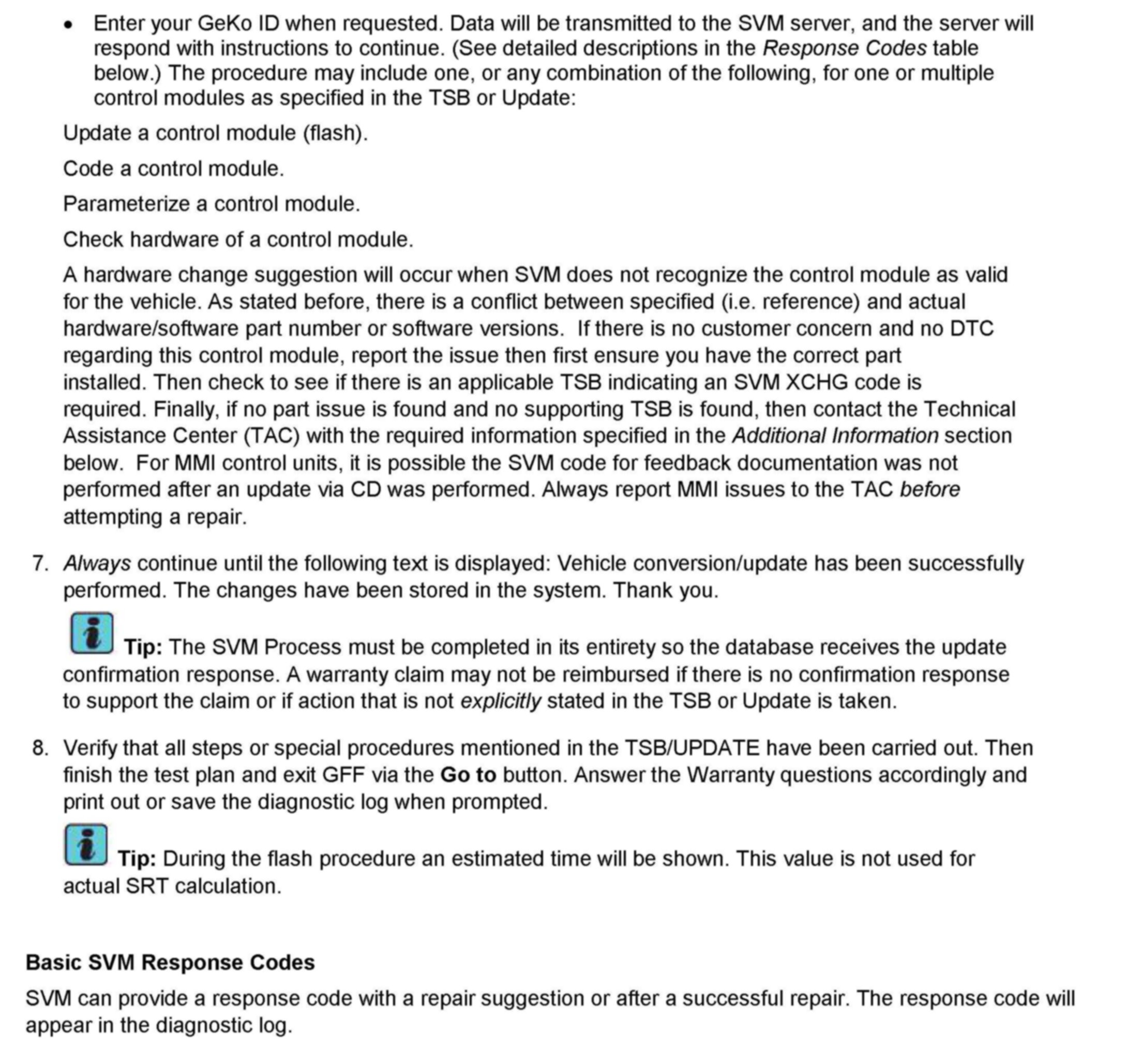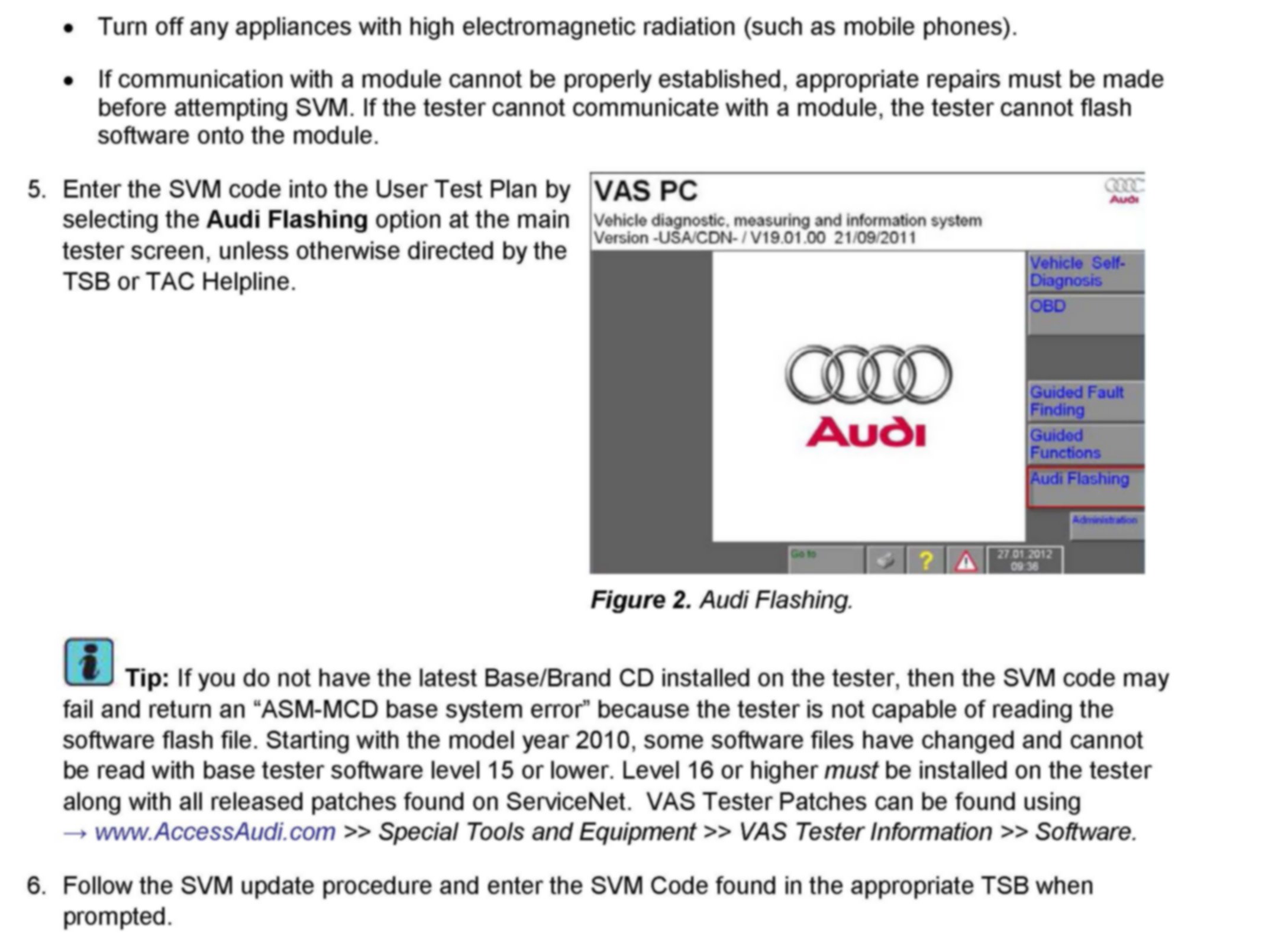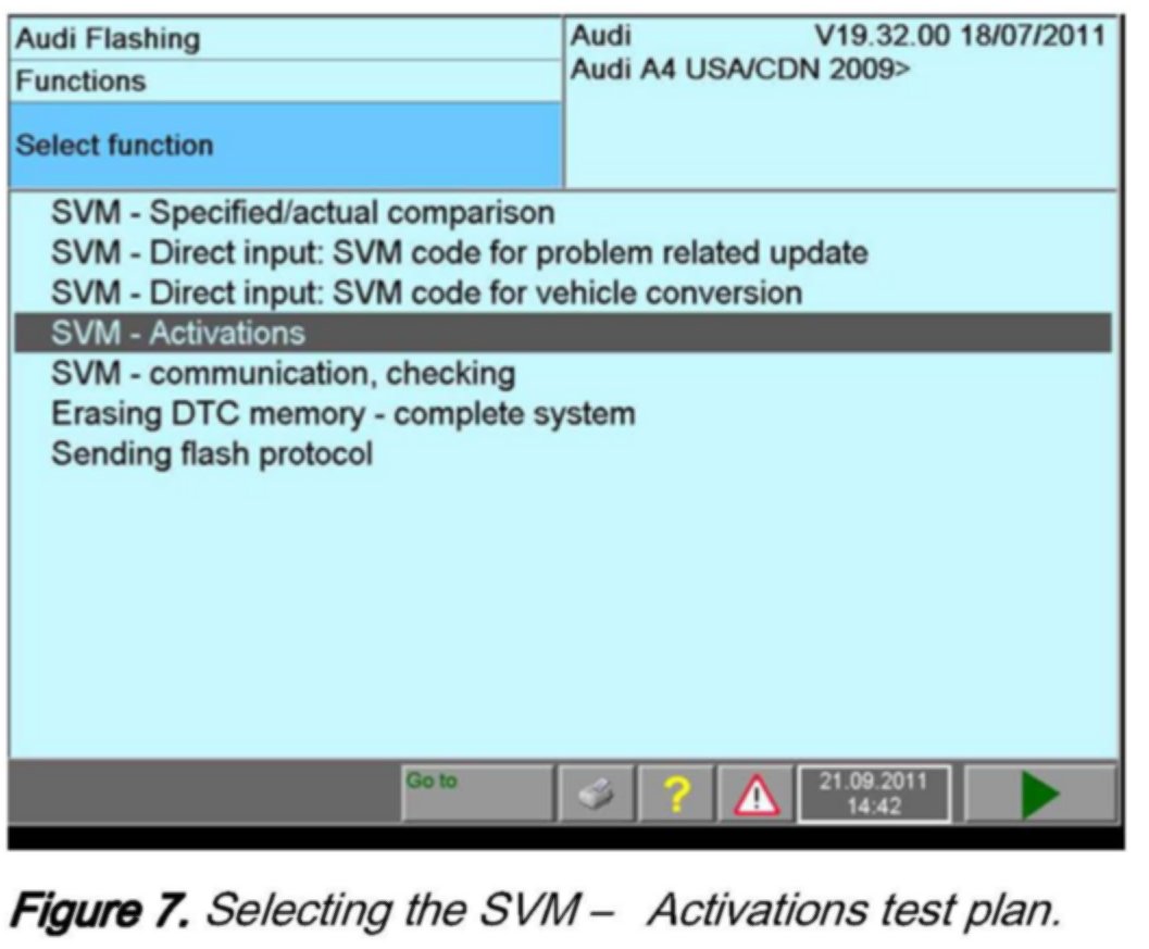 11. Using the Audi Flashing function select and run the SVM - Activations test plan. A valid GeKo ID will be needed. A valid activation code, activation number and PIN code from the Activation document will also be entered during the test plan.
