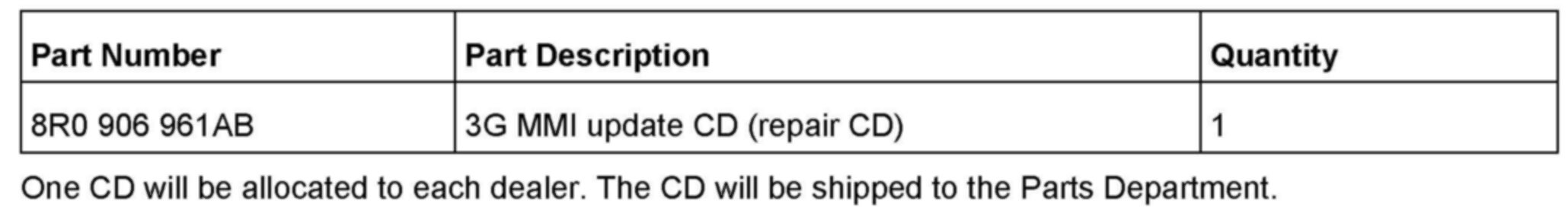 Campaign 91G1 - Software Update Of MMI 3G: Overview