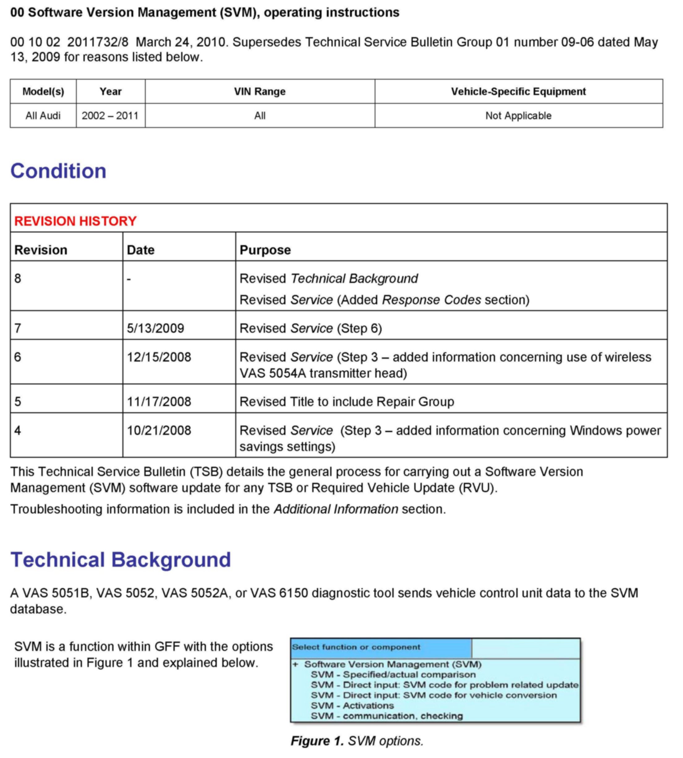 TSB 2011732 00 Software Version Management (SVM), operating instructions