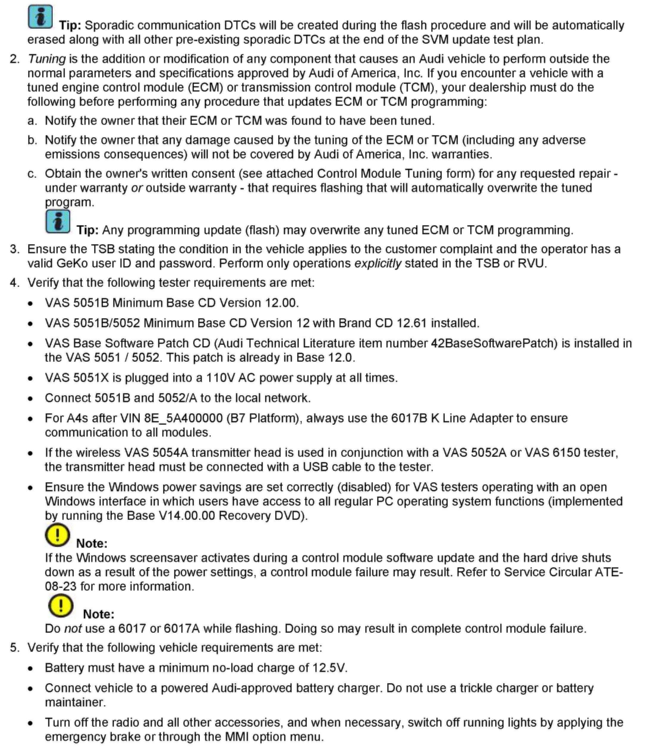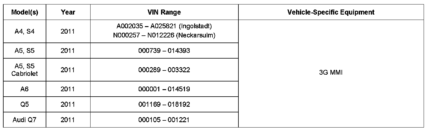 Tip: For complete and detailed instructions for the 3G MMI system update, refer to the attached Instructions for MMI 3G Nav. Plus update. (Note: These instructions are generic. Some portions may not apply to this specific TSB. Importing and exporting customer code data is not necessary for this 3G MMI update.)