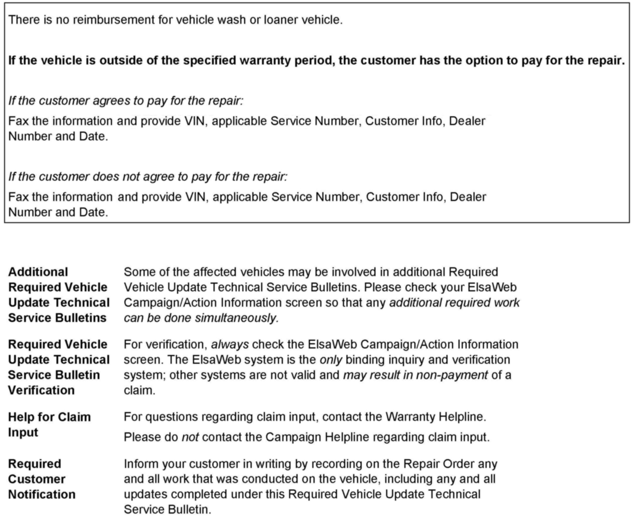 ^ Procedure must be performed within the allotted time frame stated in this Technical Service Bulletin.