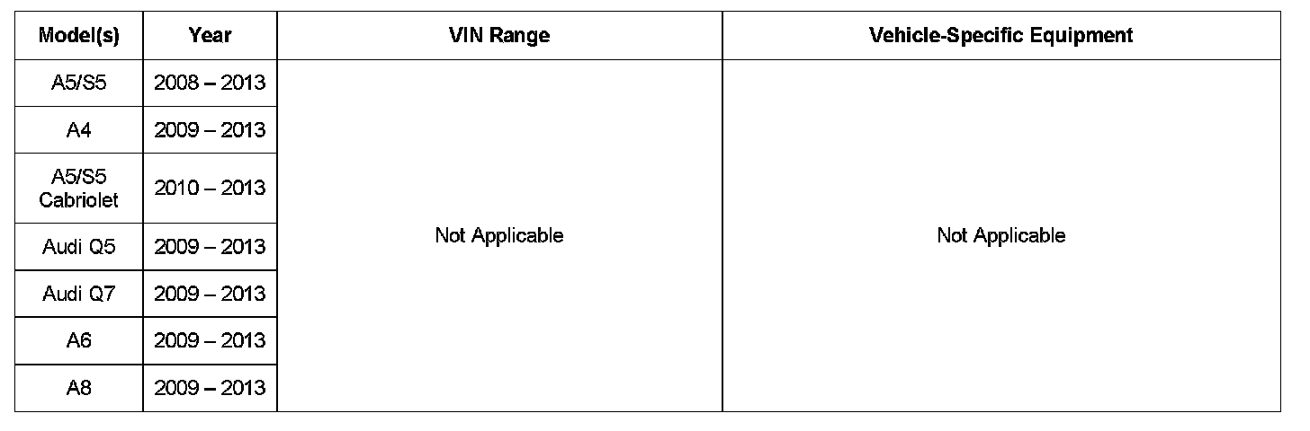 This TSB is informational only and not applicable to any Audi warranty.