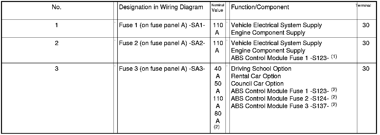 1 - Fuse 1 (on fuse panel A) -SA1- , => [ Fuses on ]