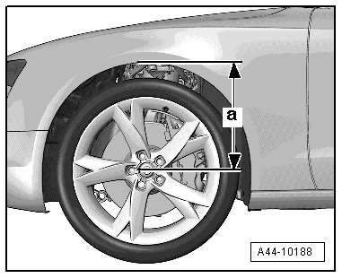 - Measure the vehicle height - a - at the right and left front wheels between the center of the wheel and the lower edge of the fender.