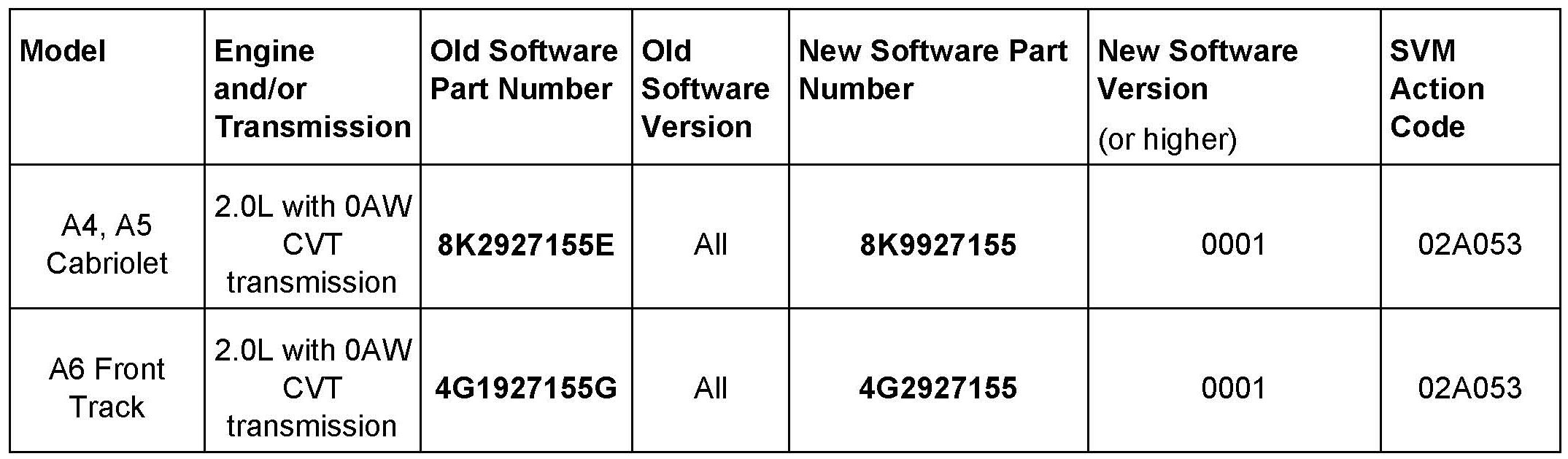 If the following conditions apply, update the transmission control module using the SVM Update Instructions that follow. If the following conditions do not apply, continue the repair with GFF.