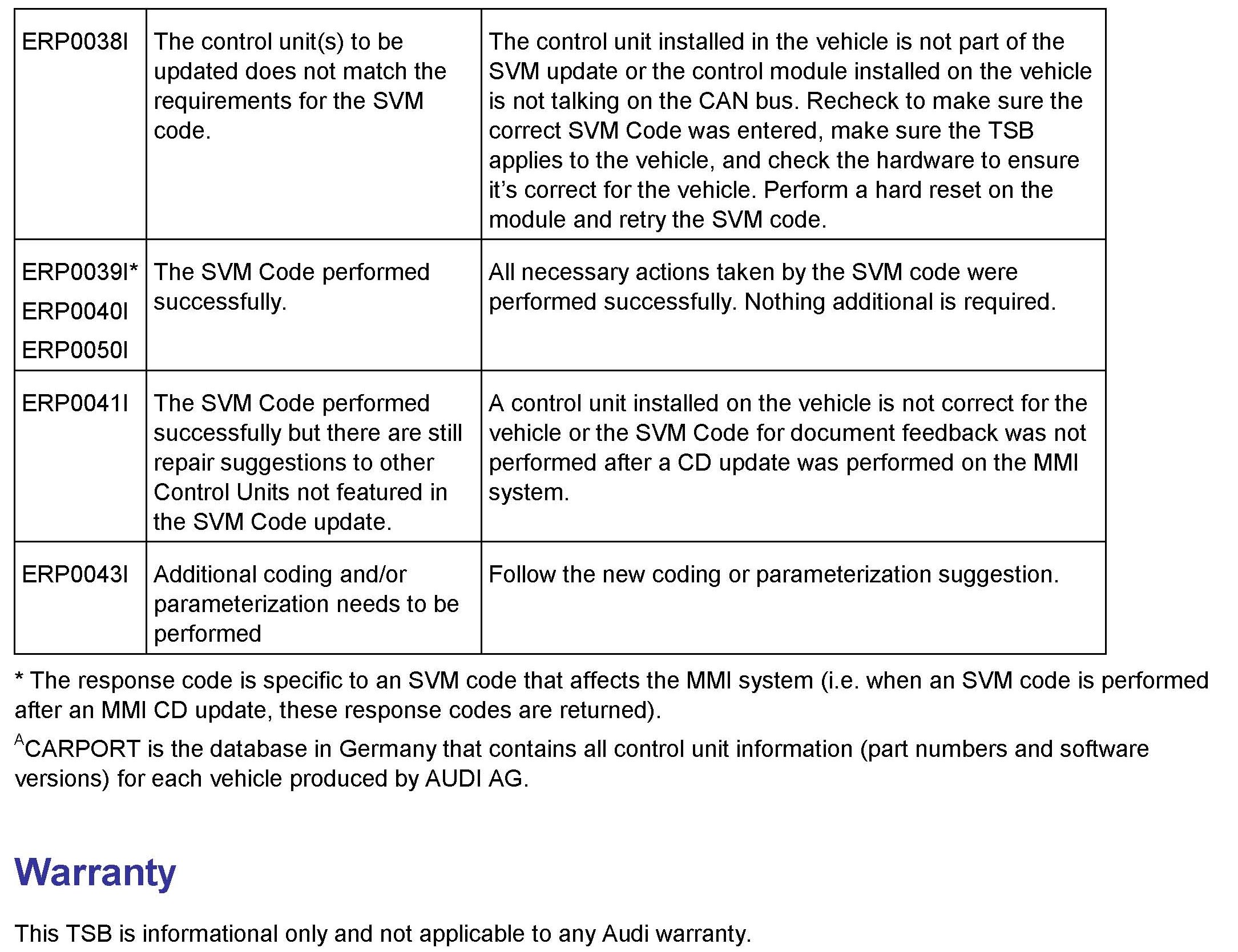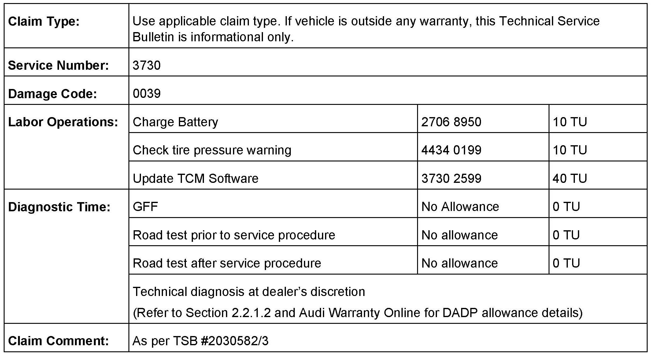 All warranty claims submitted for payment must be in accordance with the Audi Warranty Policies and Procedures Manual. Claims are subject to review or audit by Audi Warranty.
