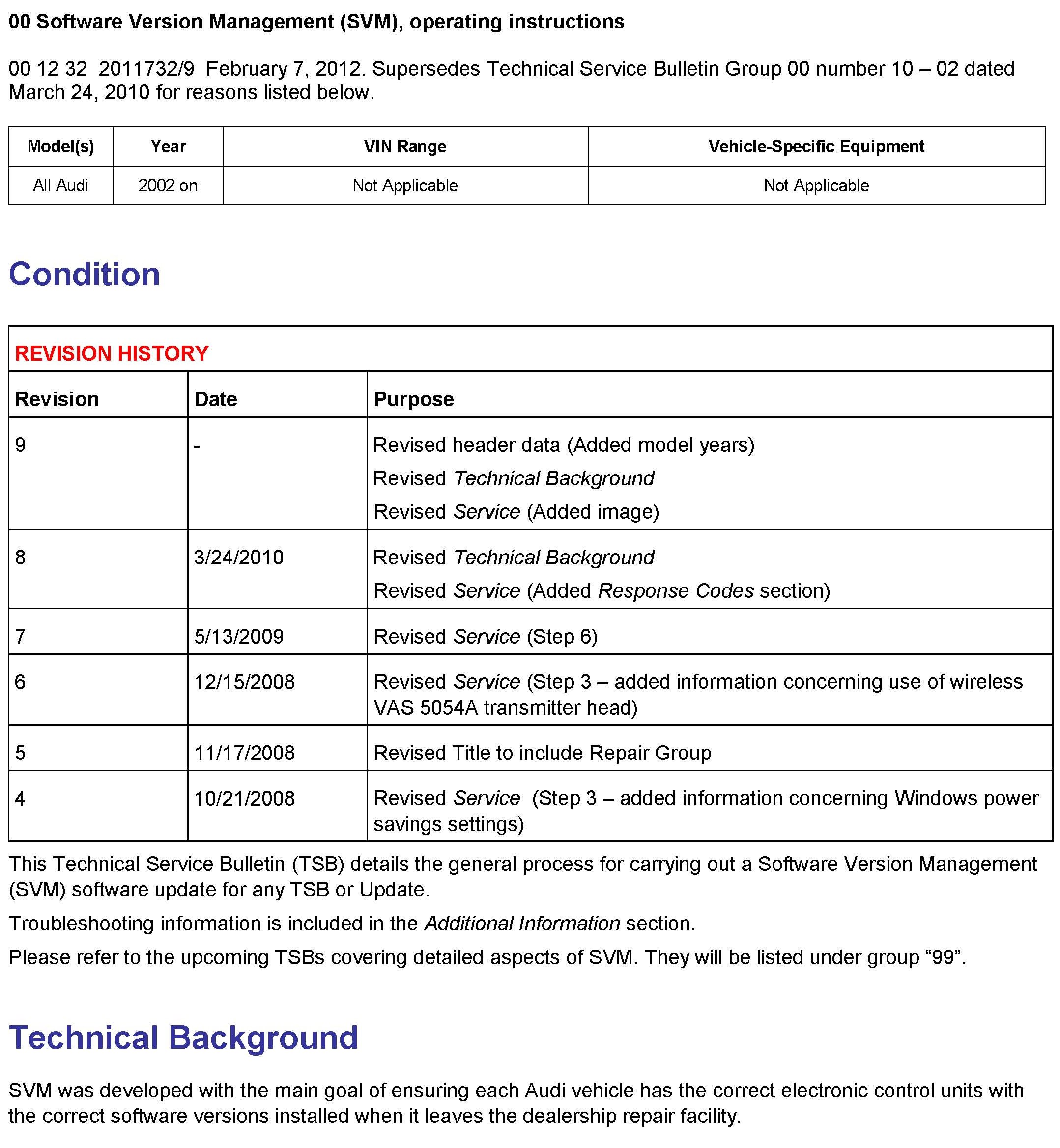 ^ TSB 2011732 00 Software Version Management (SVM), operating instructions.