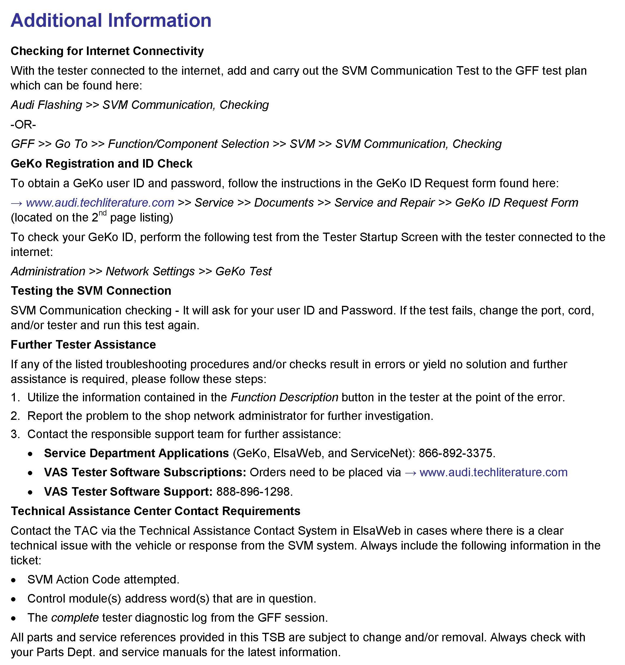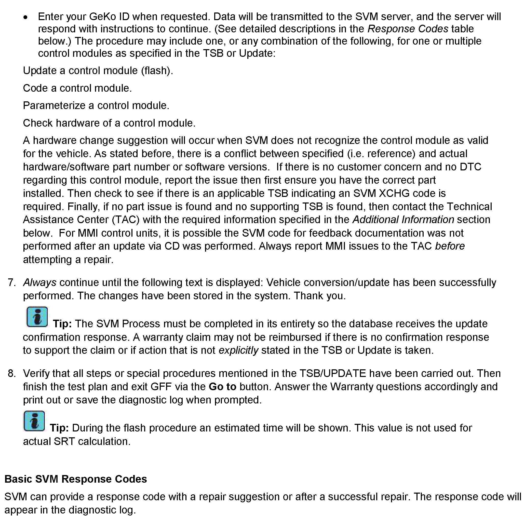1. Follow all instructions in the attached TSB 2011732 00 Software Version Management (SVM), operating instructions.