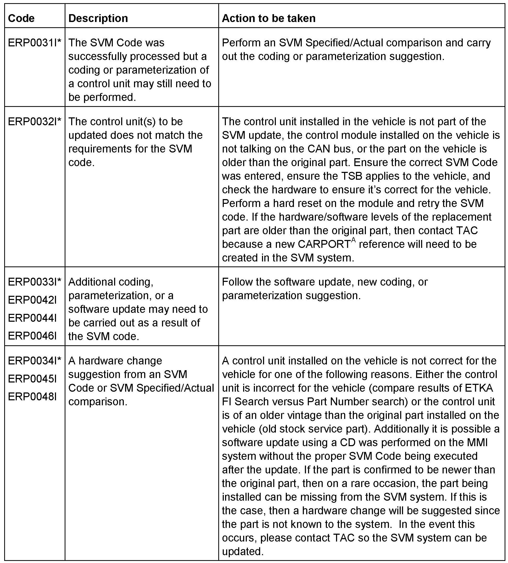 2. Update the instrument cluster (J217) using the SVM action code as listed in the table above if necessary.