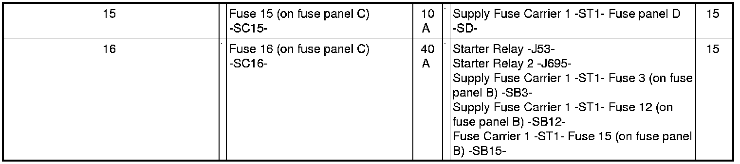 Fuses in Fuse Carrier ST1 on Fuse Panel C -SC- (black)