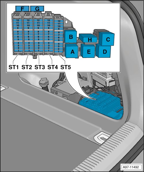 Fuses in Fuse Carrier ST5 on Fuse Panel F -SF- (black)