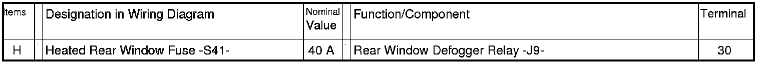 H - Heated Rear Window Fuse -S41- => [ Single Fuse on ]