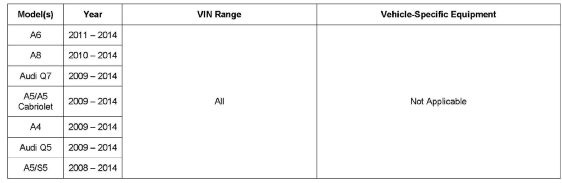 This TSB is informational only and not applicable to any Audi warranty.