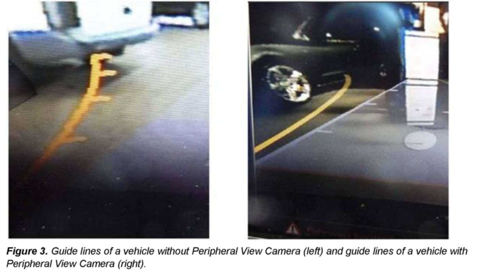 ^ The guide lines used for parking are fuzzy, distorted, or pixelated when compared with another vehicle.