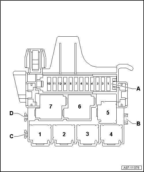 7-Pin Relay Carrier on Vehicle Electrical System Control Module -J519- Left-Hand Drive