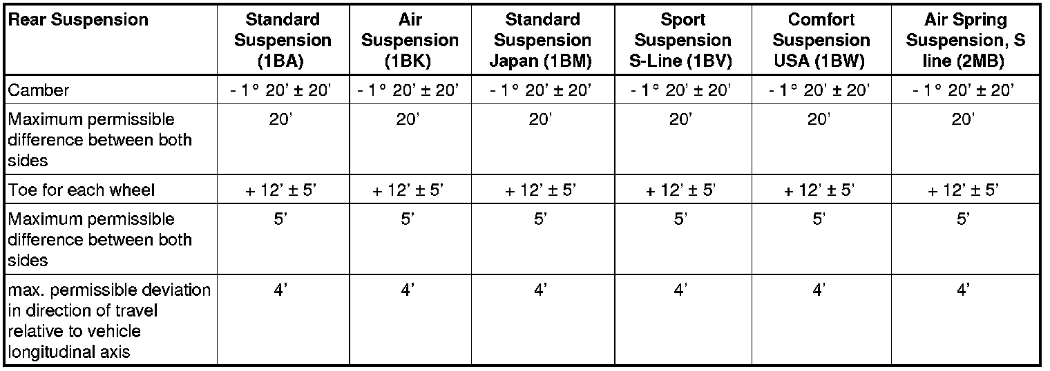 Wheel Alignment Specified Values