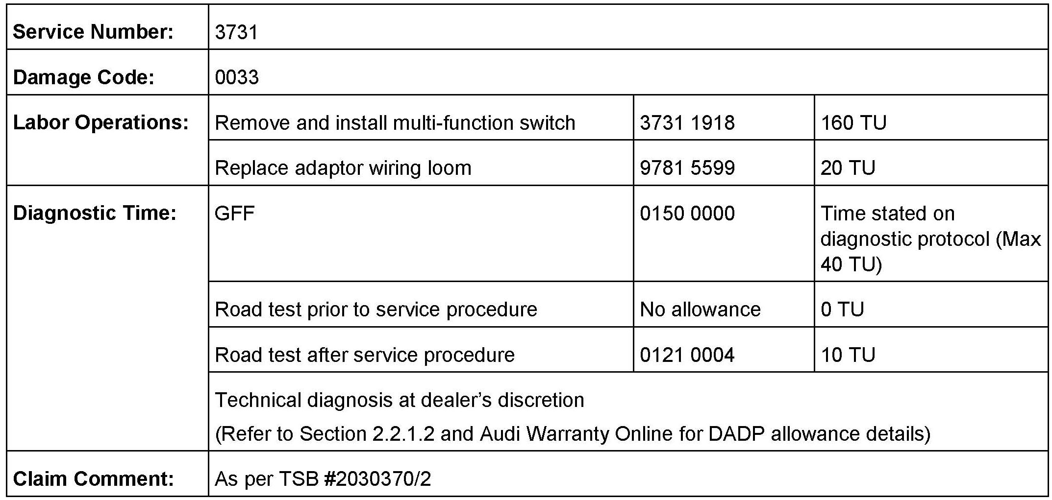 All warranty claims submitted for payment must be in accordance with the Audi Warranty Policies and Procedures Manual. Claims are subject to review or audit by Audi Warranty.