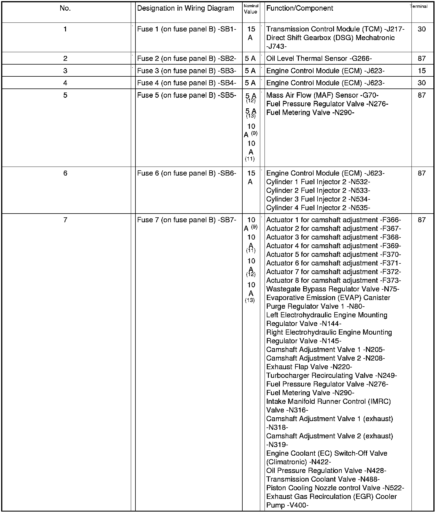 9) Only models with cylinder 4 gasoline engine (1.8L TFSI