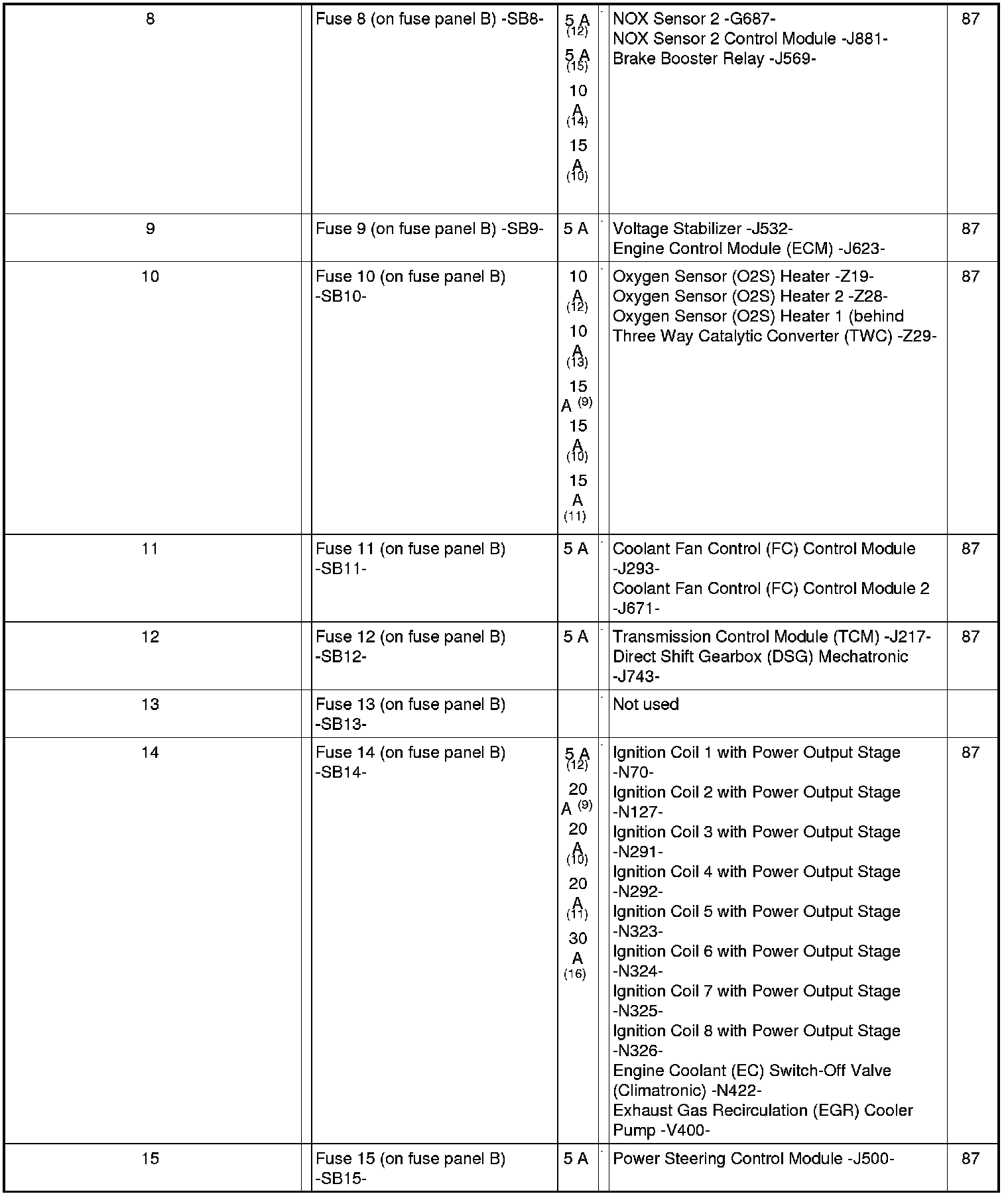 Fuses in Fuse Carrier ST1 on Fuse Panel B -SB- (black)