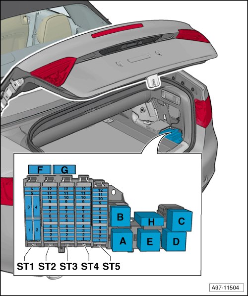 Fuses in Fuse Carrier ST2 on Fuse Panel F -SF- (black)
