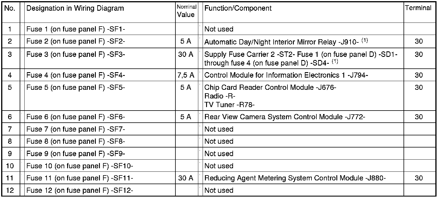 Relay / Fuse Panel F -SF- From August 2011