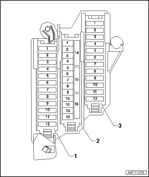 Position of Fuses Fuse Carrier ST3 (black), left-hand drive