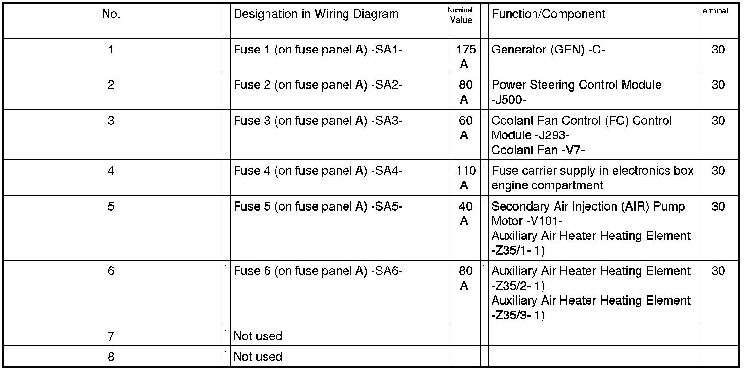 SA - Fuses (on fuse panel A)
