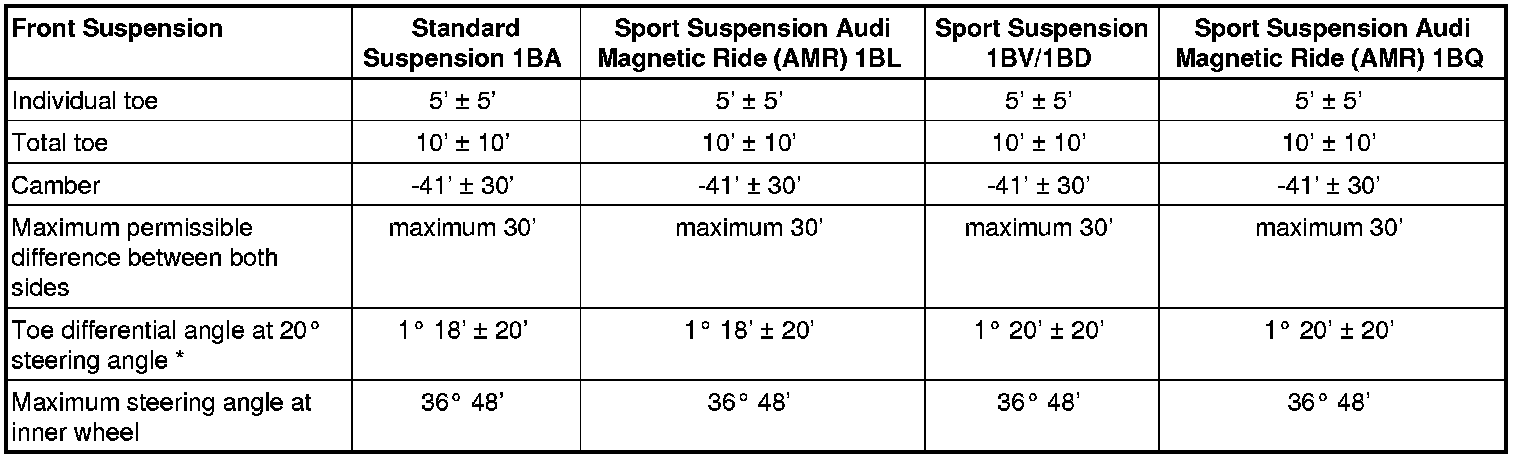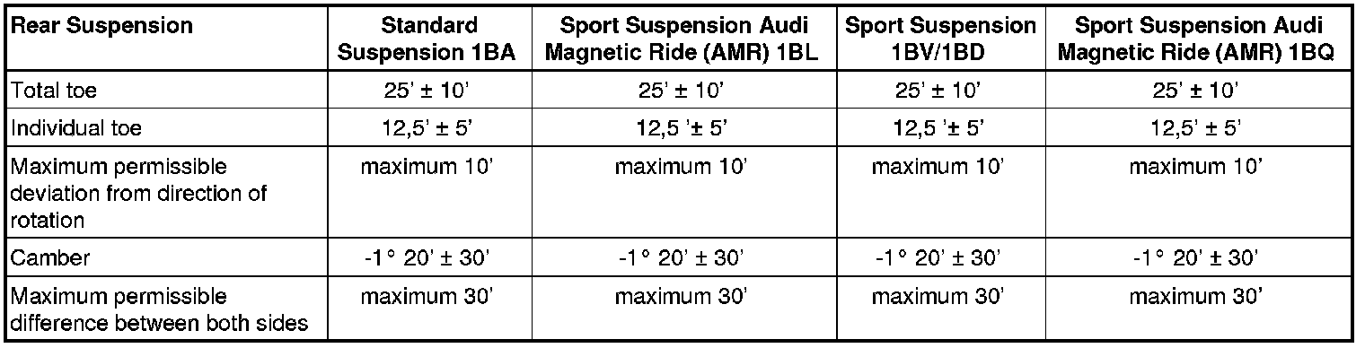 Wheel Alignment Specified Values