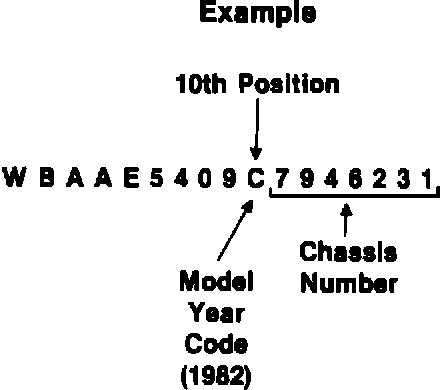 The "model year" of BMW vehicles (U.S. specification), produced since the beginning of the 1981 Model Year, can be determined from the 17 digit Vehicle Identification Number (VIN).