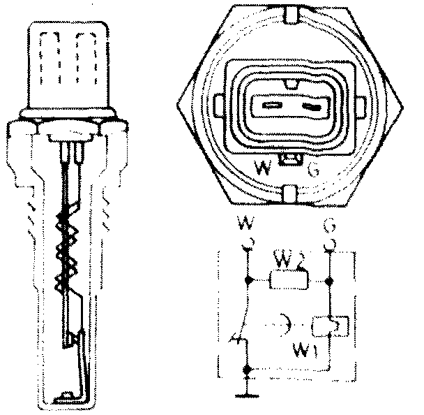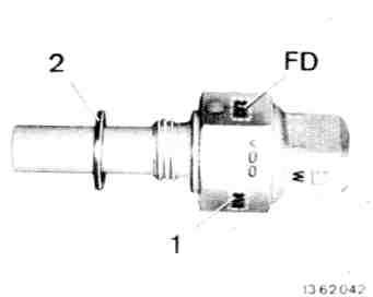The temperature time switch regulates the open time of the cold start valve, depending on the coolant temperature. The open time (e.g. 8 sec.) and switching off temperature (e.g. + 35°C/95°F) are stamped on the hexagon.