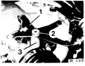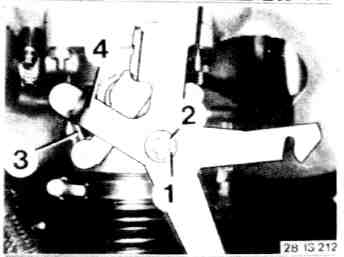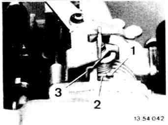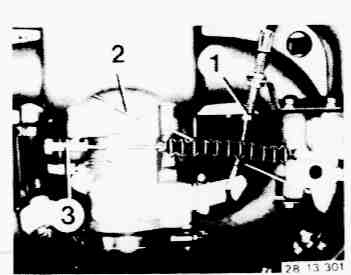 - Mount dial gage 00 2 510 with extension (3) and holder 00 2 500 on throttle housing.