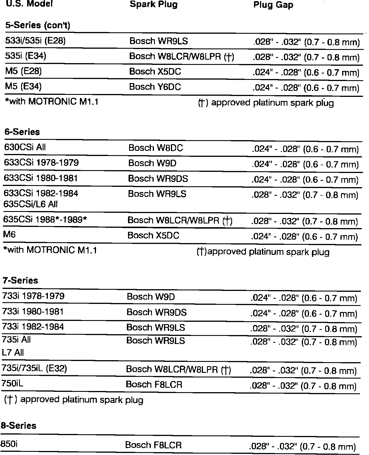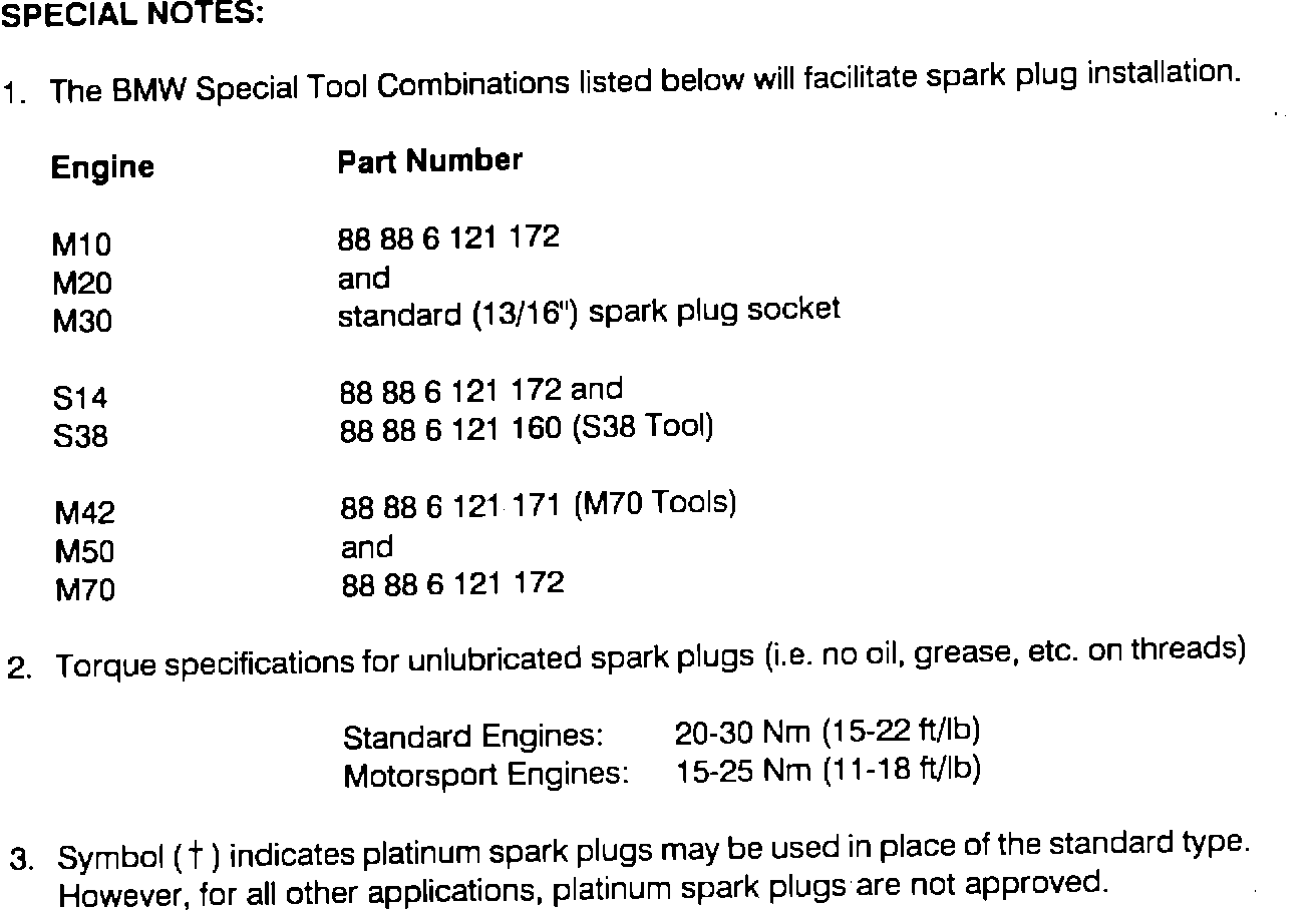 It includes the E36 (M42) spark plug number and Manufacturer.