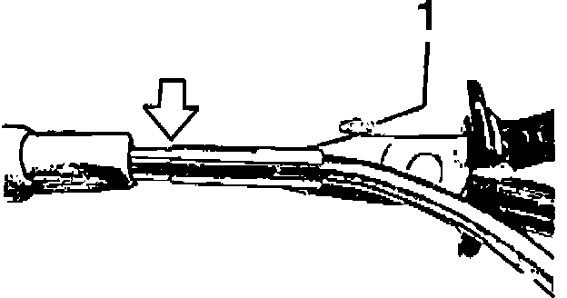 Loosen set screw (1). Slide in ignition cable against shoulder (arrow). Squeeze pliers and slide cable into connector until cable end is heard to engage.
