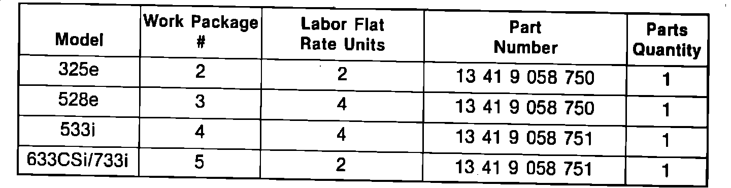 MODELS: 325e, 528e, 533i, 633CSi, 733i (produced prior to April 1986)