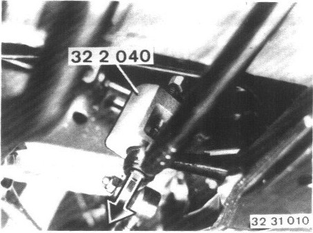 Press tie rod off of the steering drop arm with Special Tool 32 2 040