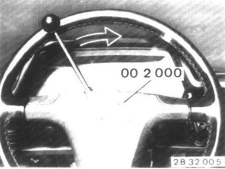 Mount Special Tool 00 2 000, turn steering wheel clockwise past the pressure point and read the friction torque 1.0 to 1.2 Nm. (0.72 to 0.87 ft. lbs.)