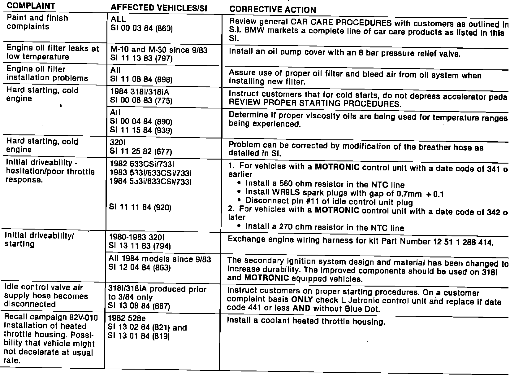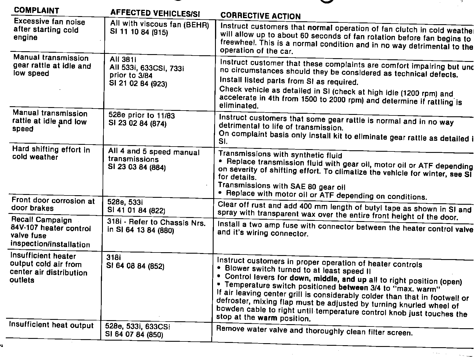 Information Bulletin 05 05 84 (941), pertaining to Winter-related Complaints, and 05 06 84 (946), a summary of Vehicle Modification Updates, has been forwarded to your BMW Service Manager.