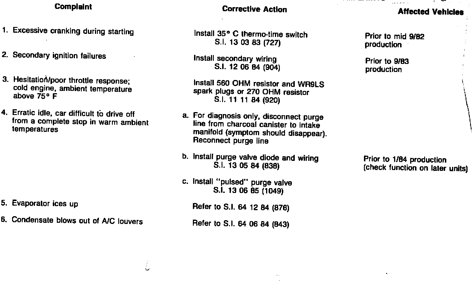 633CSI Summary of Service Fixes For Summer-Related Complaints