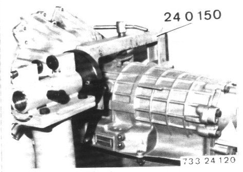- Mount transmission on Special Tool 24 0 150 together with assembly stand.