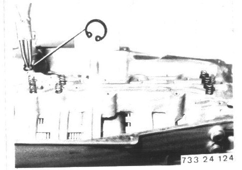 - Remove parking lock pawl, spring and bearing pin.