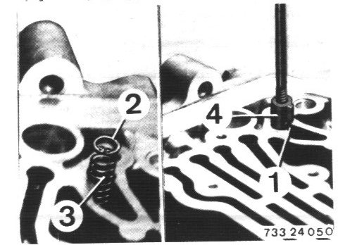 Circlip (2), spring (3) and sealing sleeve (4) must be removed additionally at bore (1).