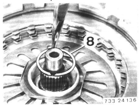 - Guide clutch set into transmission case that 4 oil feed bores are aligned with bores in the case.
