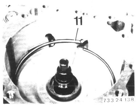 - Remove snap ring (8) with help of two screwdrivers.