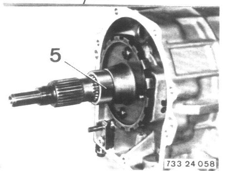 - Heat spacer (5) to about 80°C (175°F) with a hot air blower after mounting the parking lock gear and push spacer on to the output shaft.