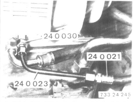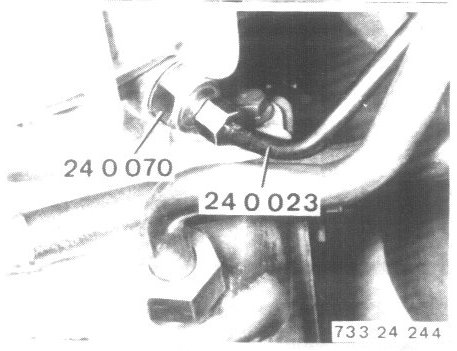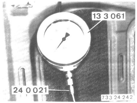 Checking Hydraulic Pressure Valves- Connect hose 24 0 021 with pressure tester 133061