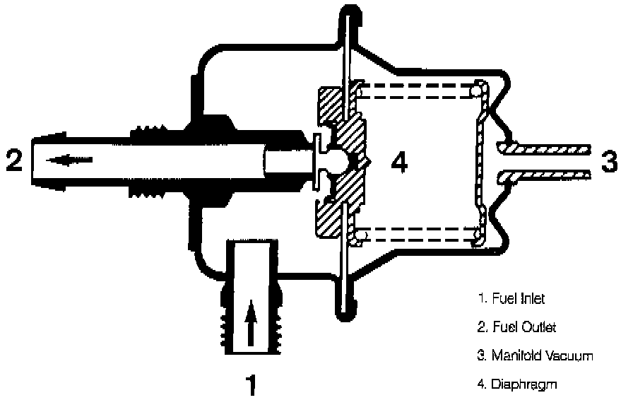 The spring chamber of the regulator is connected by a vacuum hose to the manifold. Manifold vacuum adjusts the pressure of the regulator to compensate for changes in the manifold vacuum. This slices the pressure drop across the injector to remain constant for any throttle position.