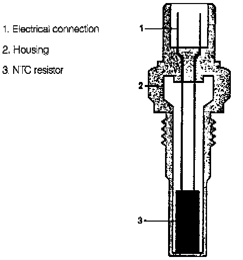 In addition to the increased idle speed provided by the auxiliary air valve, the engine requires additional fuel to ensure a stable idle. The fuel required for the cold idle/warm up phase is supplied by increasing the injection time. The E.C.U. receives, as an input, the engine operating temperature from an NTC temperature sensor. As the temperature of the sensor increases the resistance of the sensor decreases. This signal allows the E.C.U. to decrease the injection time as the engine warms up.