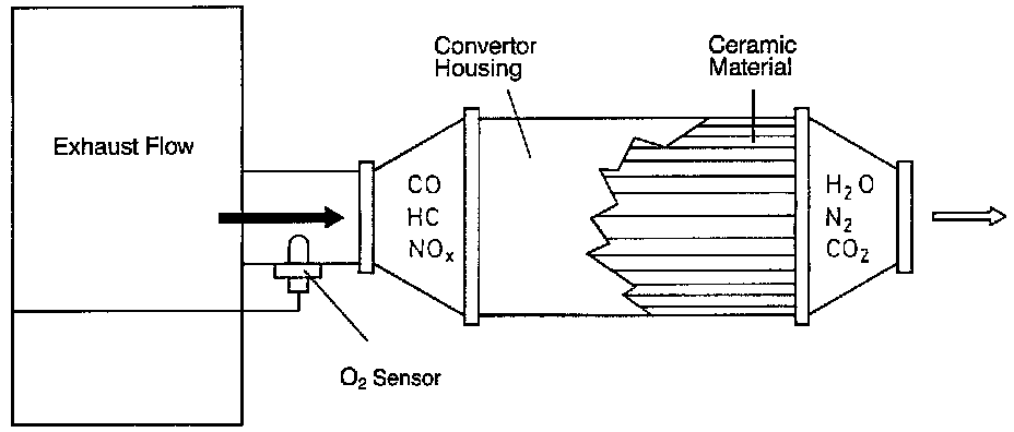 The ceramic material within the convertor is coated with the noble metals platinum and rhodium. These metals cause the chemical reaction to take place without changing their composition.