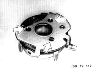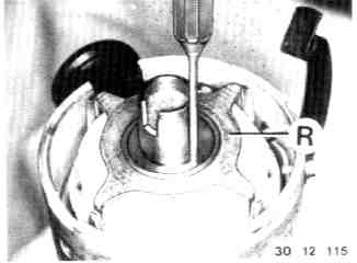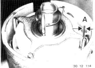 - Press distributor shaft in direction of pulse transmitter tooth (stator) and check pulse transmitter distance (A).